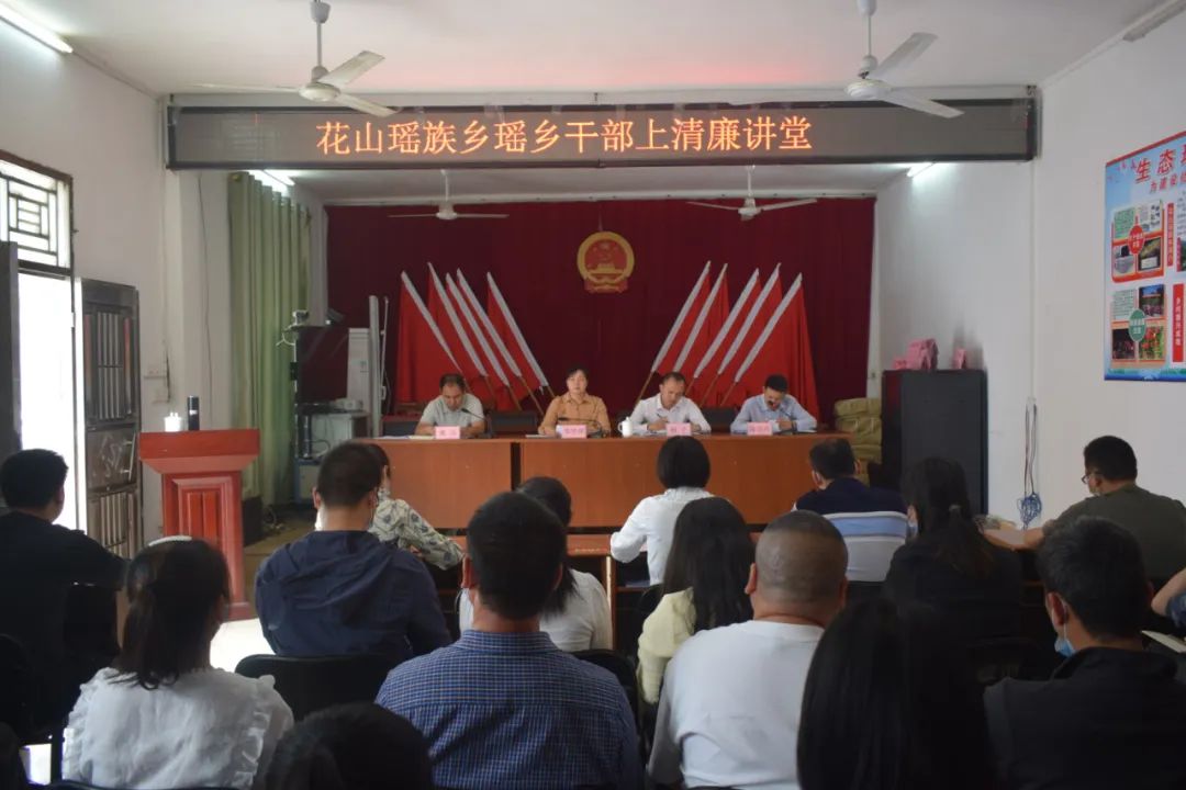 花山瑶族乡充分利用“三会一课”、每周例会等方式开展“瑶乡干部上清廉讲堂”主题教育活动,由乡领导班子带头开讲,各部门负责人、村党组织书记轮流“上台”,定期为乡、村两级干部送上廉洁“套餐”。保安村支书李鑫说:“听了‘瑶乡干部上清廉讲堂’的课,深受触动,今后将时刻提醒自己要严守纪律规矩,守住底线不越红线,做群众心中的好干部。”