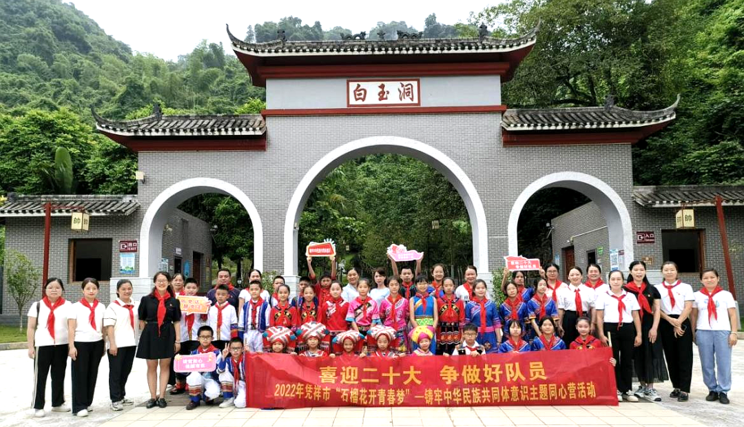 近日,凭祥市多部门联动举办凭祥市“喜迎二十大 争做好队员”2022年“石榴花开青春梦”——铸牢中华民族共同体意识主题同心营活动,全市共45名少先队员代表、中小学校少先队辅导员参加活动。