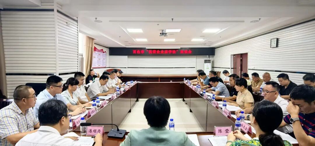 7月3日下午,百色市工商联组织召开了百色市“民营企业家学法”座谈会,会议主题是认真贯彻落实党的二十届三中全会精神,学习宣传贯彻《民营经济促进法》。市政协副主席、市工商联主席黄彩雪出席座谈会并讲话,市委统战部副部长、市工商联党组书记潘顺丹主持会议,市工商联(总商会)企业家副主席、副会长、市直属商协会负责人和右江区工商联主要领导参加会议,座谈会还邀请了市发改委、司法局、法学会有关领导及市委党校的专家学者到会指导。