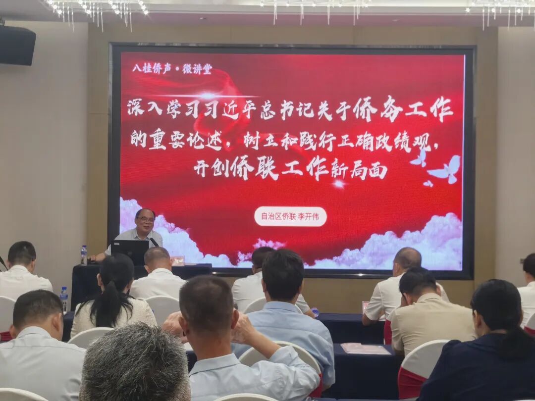 4月10日,百色市侨联举办“八桂侨声”微讲堂,邀请自治区侨联党组成员、秘书长李开伟作专题宣讲。百色市侨联四届委员、县(市、区)侨联班子成员,以及部分基层侨务工作者40余人参加专题辅导学习。