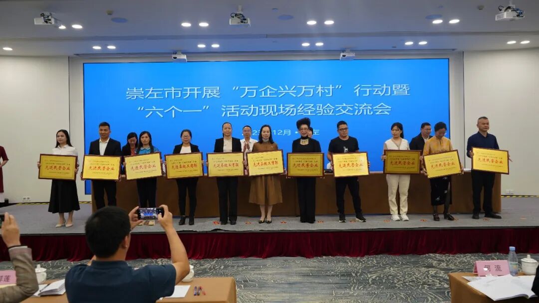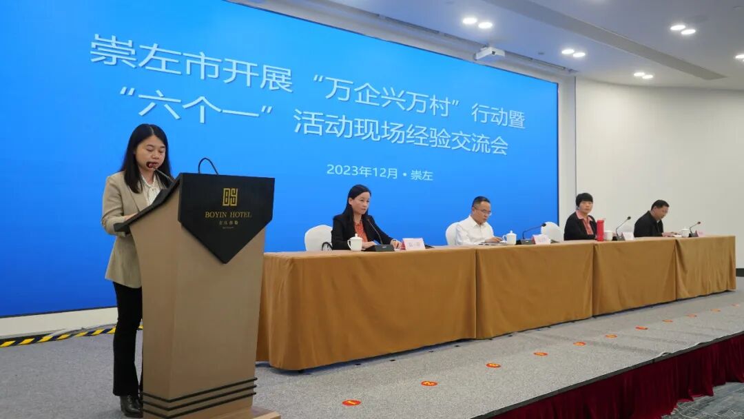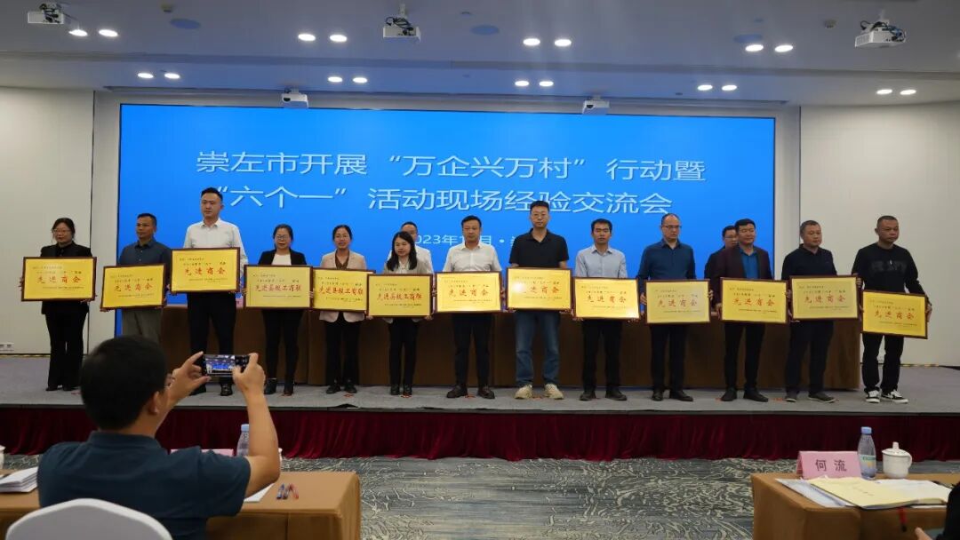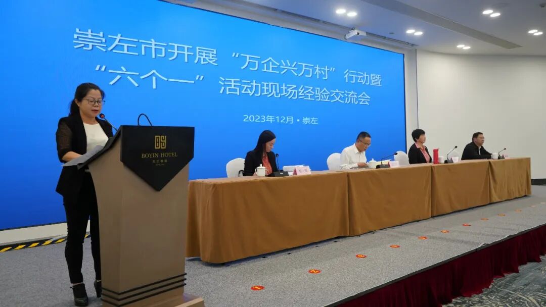 近日,崇左市召开2023年“万企兴万村”行动暨“六个一”活动现场经验交流会,总结2023年全市开展“万企兴万村”行动和“六个一”活动成效,分析存在问题,鼓励先进、鞭策后进,引导全市工商联所属商会和广大民营经济人士紧紧围绕“六大振兴”工作思路,继续参与“万企兴万村”行动和“六个一”活动,以实际行动助力全面建设面向东盟开放合作的现代化南疆国门城市。崇左市委常委、统战部部长陆文崭,市政协副主席、市工商联主席吴爱红出席会议并讲话。