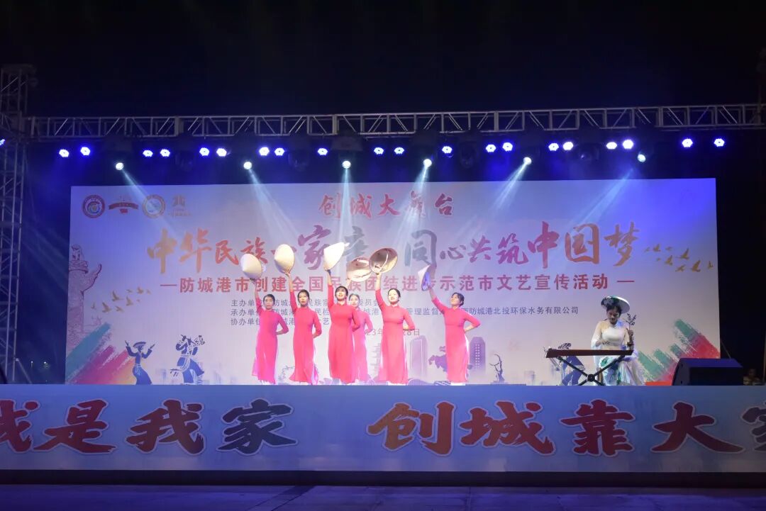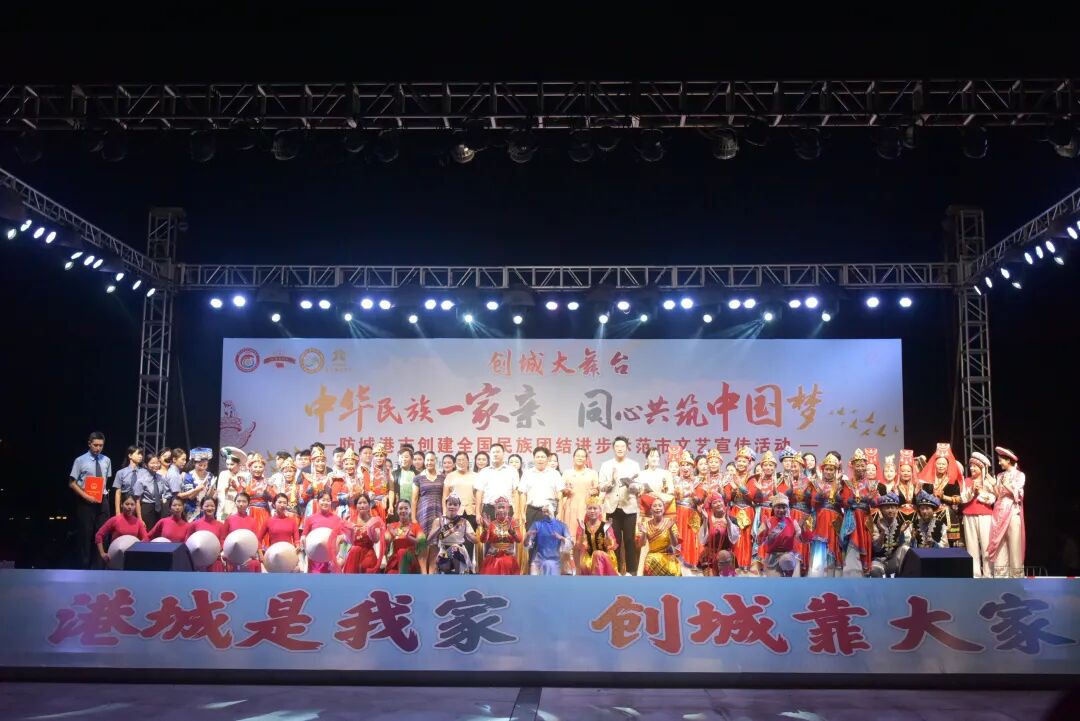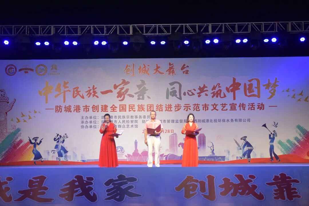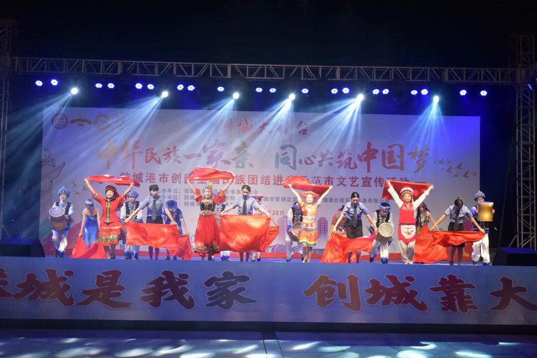 7月28日晚,由防城港市民族宗教事务委员会主办,防城港市人民检察院、防城港市城市管理监督局、广西防城港北投环保水务有限公司共同承办,市群众艺术馆协办的创城大舞台“中华民族一家亲 同心共筑中国梦”防城港市创建全国民族团结进步示范市文艺宣传活动,在我市北部湾海洋文化公园成功举办。
