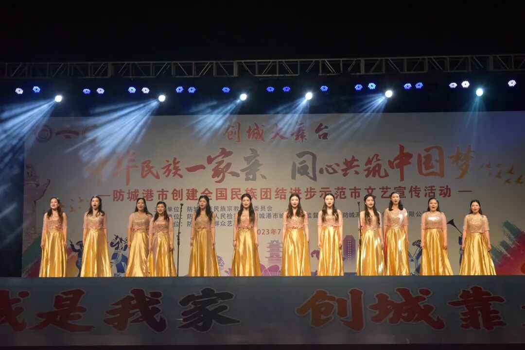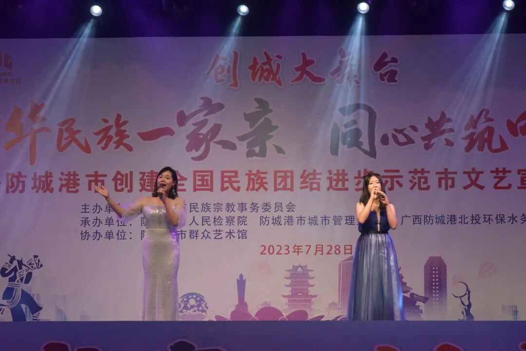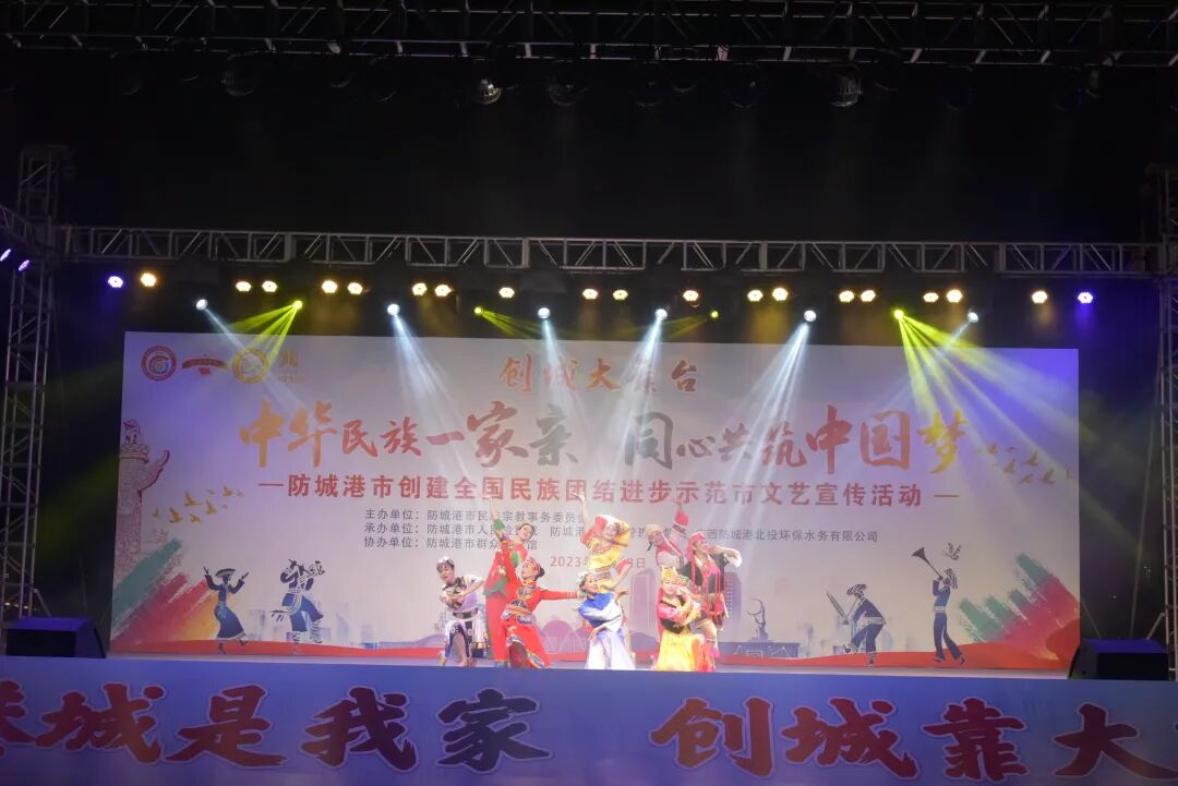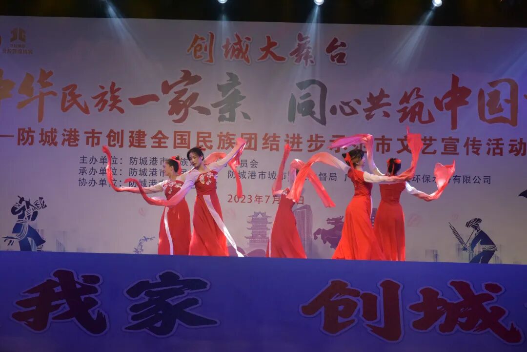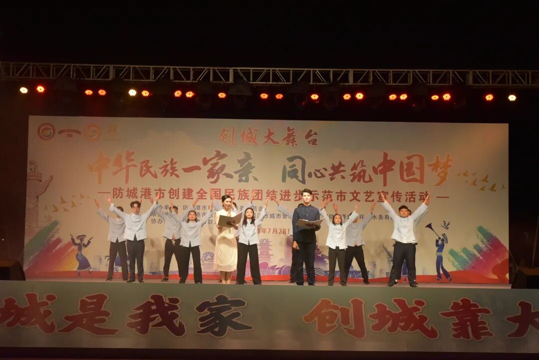 7月28日晚,由防城港市民族宗教事务委员会主办,防城港市人民检察院、防城港市城市管理监督局、广西防城港北投环保水务有限公司共同承办,市群众艺术馆协办的创城大舞台“中华民族一家亲 同心共筑中国梦”防城港市创建全国民族团结进步示范市文艺宣传活动,在我市北部湾海洋文化公园成功举办。