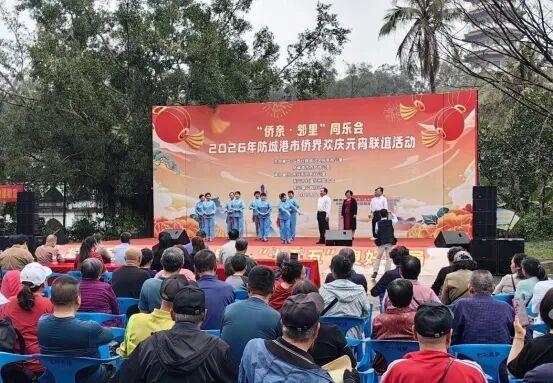 近日,由广西壮族自治区侨务办公室、防城港市侨务办公室主办,东兴市侨务办公室、东兴市归国华侨联合会、东兴镇公园社区联合承办的“侨亲·邻里”同乐会——2026年防城港市侨界欢庆元宵联谊活动在东兴中越人民友谊公园圆满举办。归侨侨眷、海外侨胞代表与各界群众约500人参加。