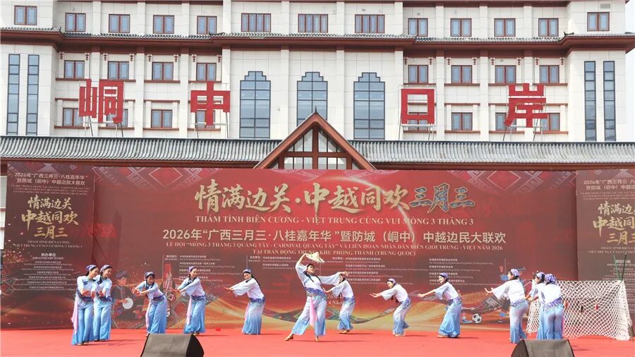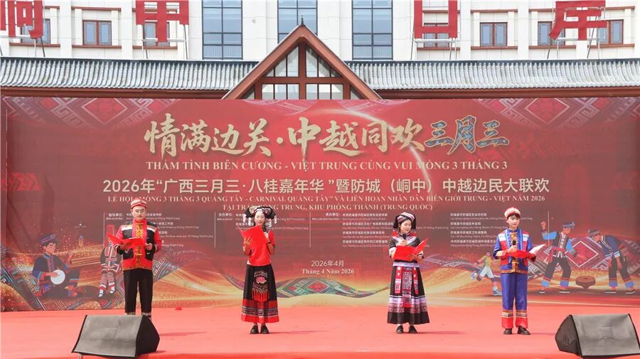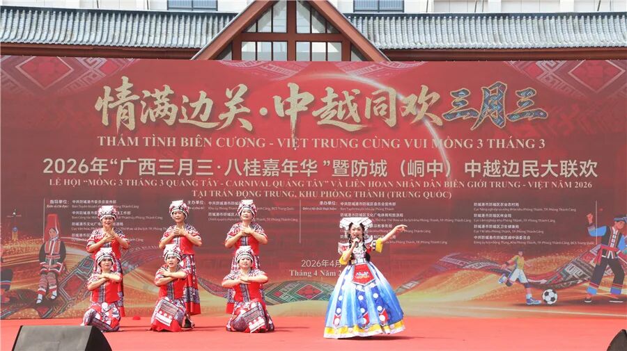 4月18日,春光明媚,边关欢腾,防城区峒中镇峒中口岸广场上鼓乐喧天、笑语盈盈,“情满边关•中越同欢三月三”——2026年“广西三月三•八桂嘉年华”暨防城(峒中)中越边民大联欢活动在这里精彩上演。来自中国防城区和越南横模乡等地的边民与游客欢聚一堂,通过非遗展演、体育竞技、文化互动等丰富多彩的活动,共庆传统佳节、共叙邻里情谊,生动勾勒出中越命运共同体的边关画卷,为“广西三月三•八桂嘉年华”增添了亮丽的边关色彩。