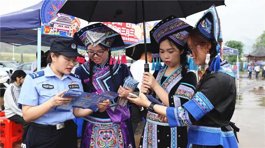▲工作人员向群众科普反走私反偷渡相关知识。