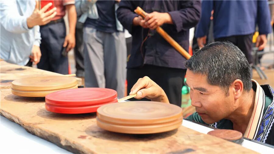 ▲中越陀螺友谊赛现场,选手们正在切磋比拼。