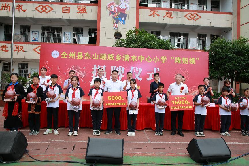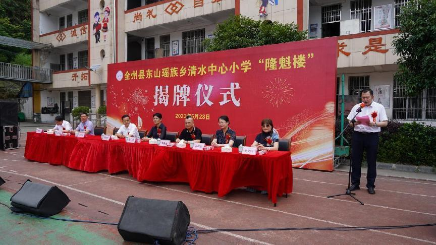 据了解,清水中心小学“隆魁楼”是广西景区通旅游发展有限公司董事长、中国侨商会副会长陈隆魁捐资100万元人民币修建,目的是为进一步帮助东山清水中心小学改善办学条件,为学生营造良好学习环境。
