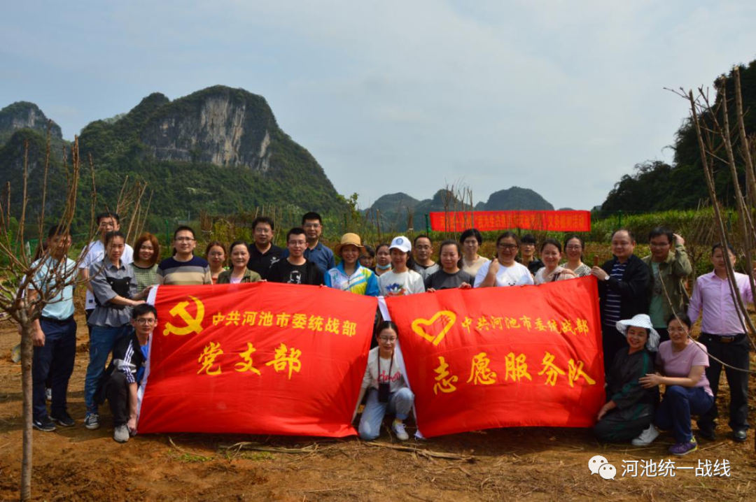 3月18日上午,河池市委统战部组织各民主党派、市工商联、市侨联、市新联会等单位的干部职工到河池市宜州区马铃水库开展以“我为生态秀美新河池添彩”为主题的义务植树活动,以实际行动践行“绿水青山就是金山银山”理念,为生态秀美新河池增绿添彩。