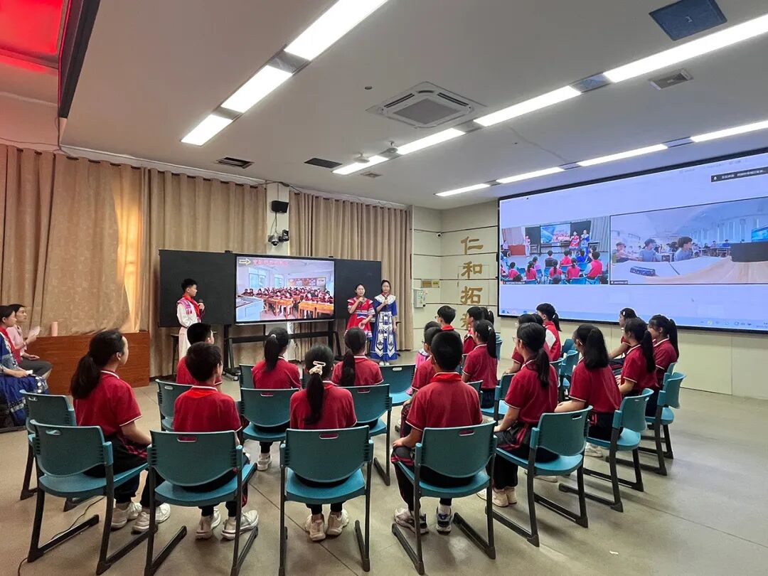 活动以“云端互访”的形式展开。香港德萃小学6F班的同学通过精心制作的视频与图片,介绍了现代化的校园设施、丰富多元的文化课程,以及精彩纷呈的校园文化艺术节,生动呈现香港校园的独特魅力。金城江区实验小学则以创新的小组形式进行分享:校园探秘组带领香港伙伴“云游”校园,从绿荫环绕的操场到充满书香的图书馆,全方位展示校园设施与多彩课外活动;学习生活组揭秘课程设置与日常作息,展现独特的学习氛围;文化传承组将壮族特色文化与传统节日的故事娓娓道来;家乡寻访组用一幅幅秀丽风光图,推介河池的山水美景与特色风物,让香港的同学们对壮乡文化有了更立体的认知。