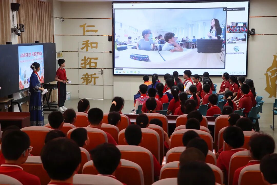 5月16日,河池市金城江区实验小学五(5)班、五(11)班与香港德萃小学6F班携手,在互联网上开展“山海情深手拉手 石榴花开共成长”联谊活动。