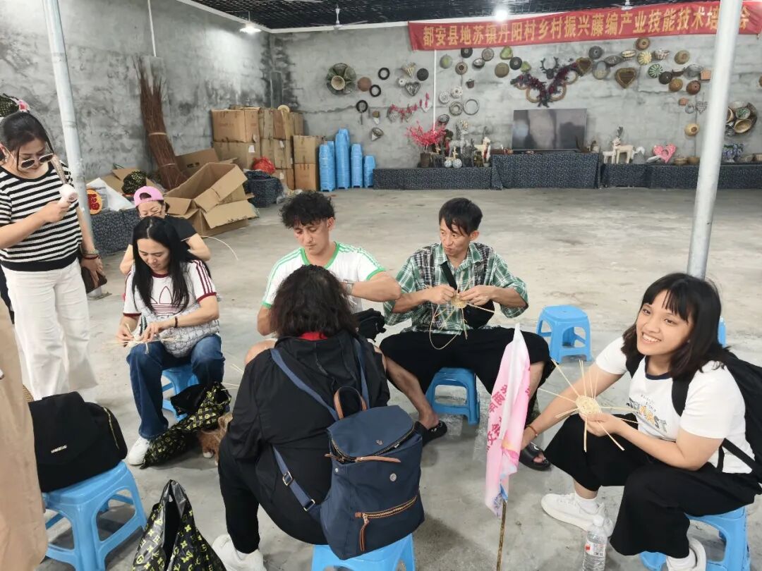 在都安县地苏镇丹阳村藤编非遗展示馆,台青们认真聆听藤编技艺的历史渊源与制作流程,不时提问互动。展厅内琳琅满目的藤编工艺品兼具实用与艺术性,让参访团成员赞叹不已。在藤编技术培训基地,大家手持藤条,在当地匠人指导下学习穿插、缠绕、定型等技法。完成简易作品的那一刻,喜悦与成就感溢于言表。