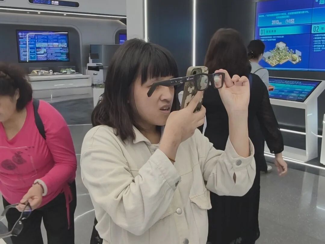 台湾青年在南A中心体验翻译眼镜。(河池市台办供图)