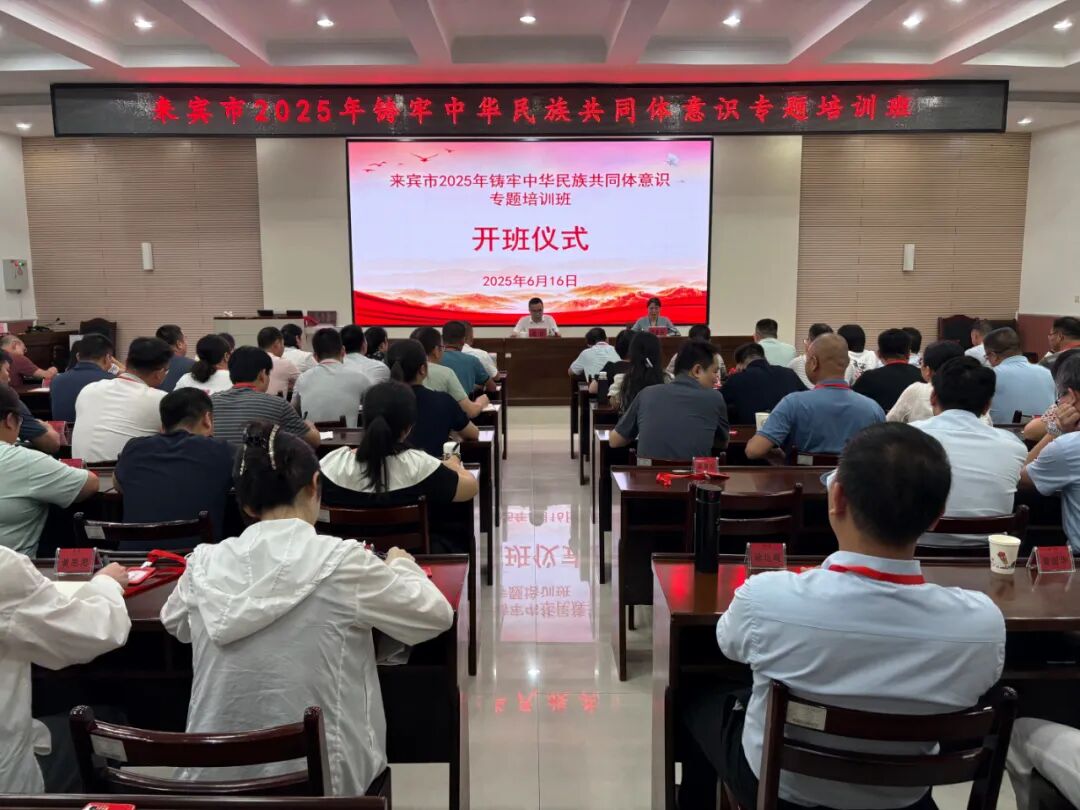 6月16日至20日,来宾市2025年铸牢中华民族共同体意识专题培训班在来宾市委党校成功举办。兴宾、象州、武宣、忻城、金秀、合山等6个县(市、区)党委统战部(民宗局)业务骨干及70个乡镇街道统战委员(统战干事)参加培训。来宾市委统战部副部长,市民宗委党组书记、主任唐林出席开班仪式并作动员讲话,来宾市委党校副校长陈春琳主持开班仪式。