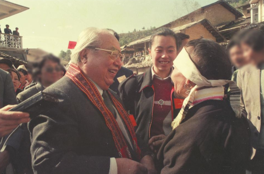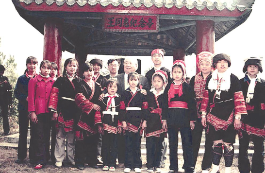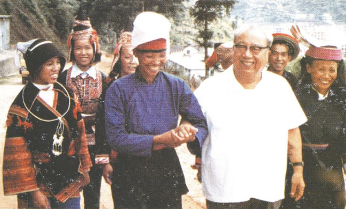1988年12月,费孝通在六巷乡王同惠纪念亭缅怀王同惠,并与瑶族同胞合影。(资料图)