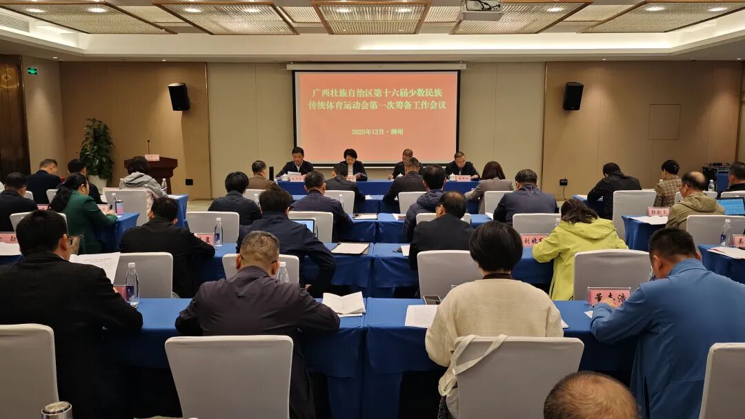 2025年12月12日,自治区第十六届少数民族传统体育运动会筹备工作第一次会议在柳州市召开。自治区民宗委、体育局,柳州市及各市民宗、体育部门相关领导,广西大学、广西师范大学、广西民族大学、南宁师范大学、广西体育高等专科学校相关人员参会。