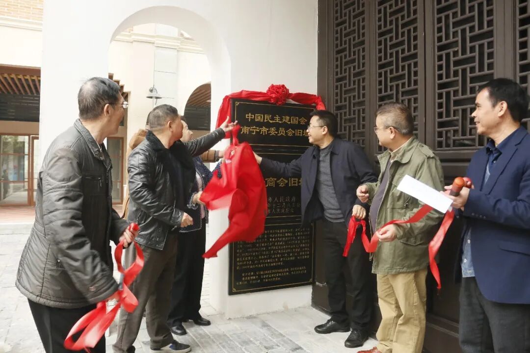 吕智勇代表中共南宁市委统战部对旧址的揭牌表示祝贺。他希望南宁民建以旧址揭牌为新起点,在重温历史中感悟合作初心,在缅怀先辈中坚定前进方向,不断增进对中国共产党领导和中国特色社会主义的政治认同、思想认同、理论认同、情感认同,持续为南宁经济社会高质量发展贡献力量。