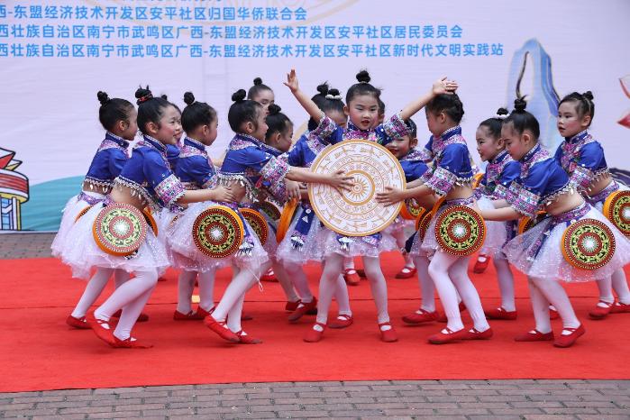 日前,一场以“非遗润侨区 浓情三月三”为主题的铸牢中华民族共同体意识活动,在广西—东盟经开区宗信大帽天街小区精彩上演。文艺展演、民族体育竞技、特色体验等多元形式轮番登场,吸引200余名机关代表及社区居民热情参与。