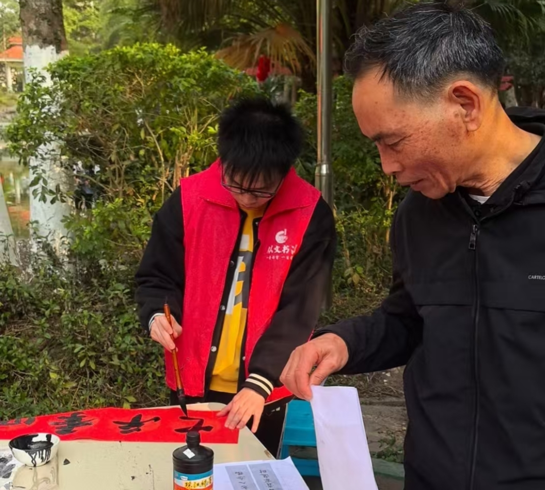 一位居民手捧着写好的春联,高兴地说道:“手写的春联更有温度,满满的过年仪式感,希望钦州新联会明年继续来我们小区写春联!”