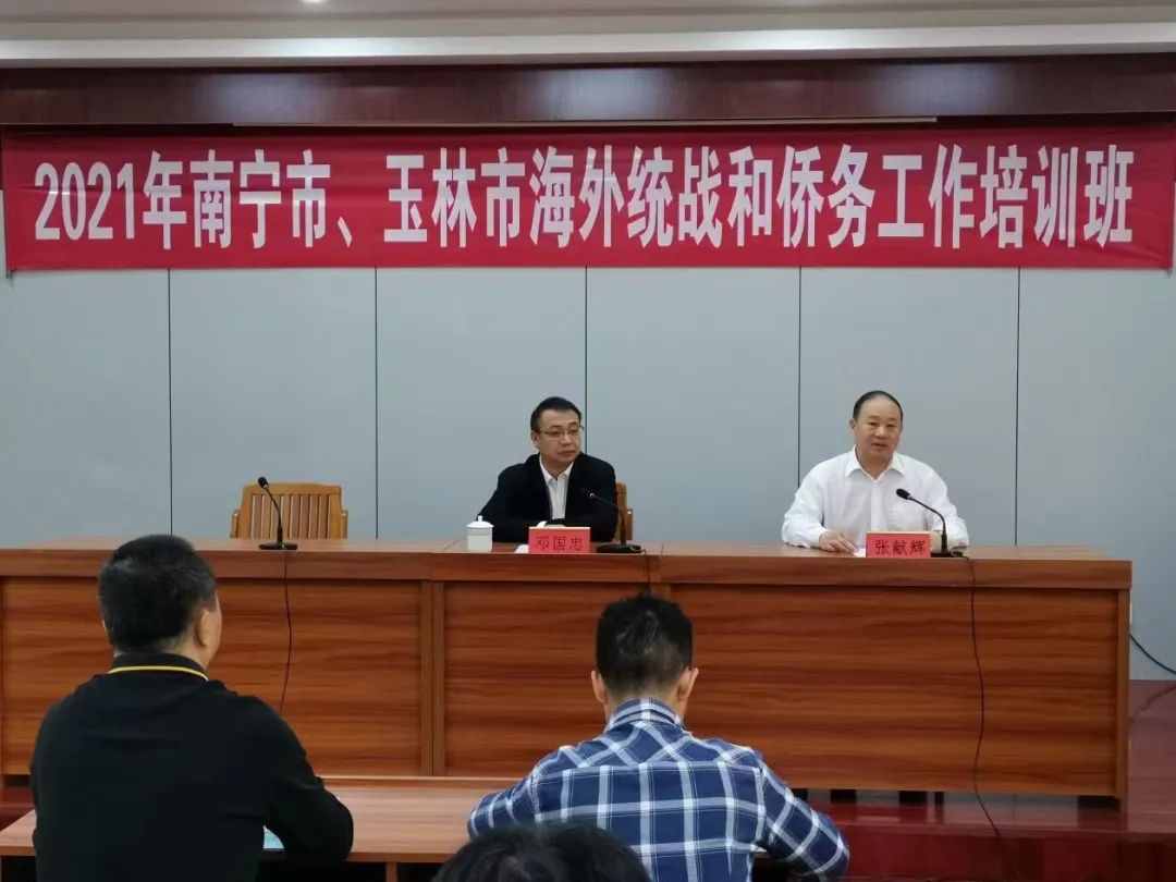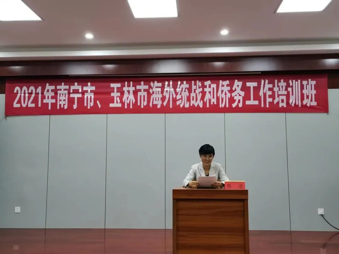 11月2日-11月4日,由南宁市委统战部、玉林市委统战部共同组织的海外统战和侨务工作培训班在玉林市委党校圆满举办,南宁市、玉林市约40名侨务干部参加培训。自治区党委统战部副部长陈洁,玉林市委常委、统战部部长邓国忠应邀为学员们授课,南宁市委统战部副部长张献辉参加培训班。