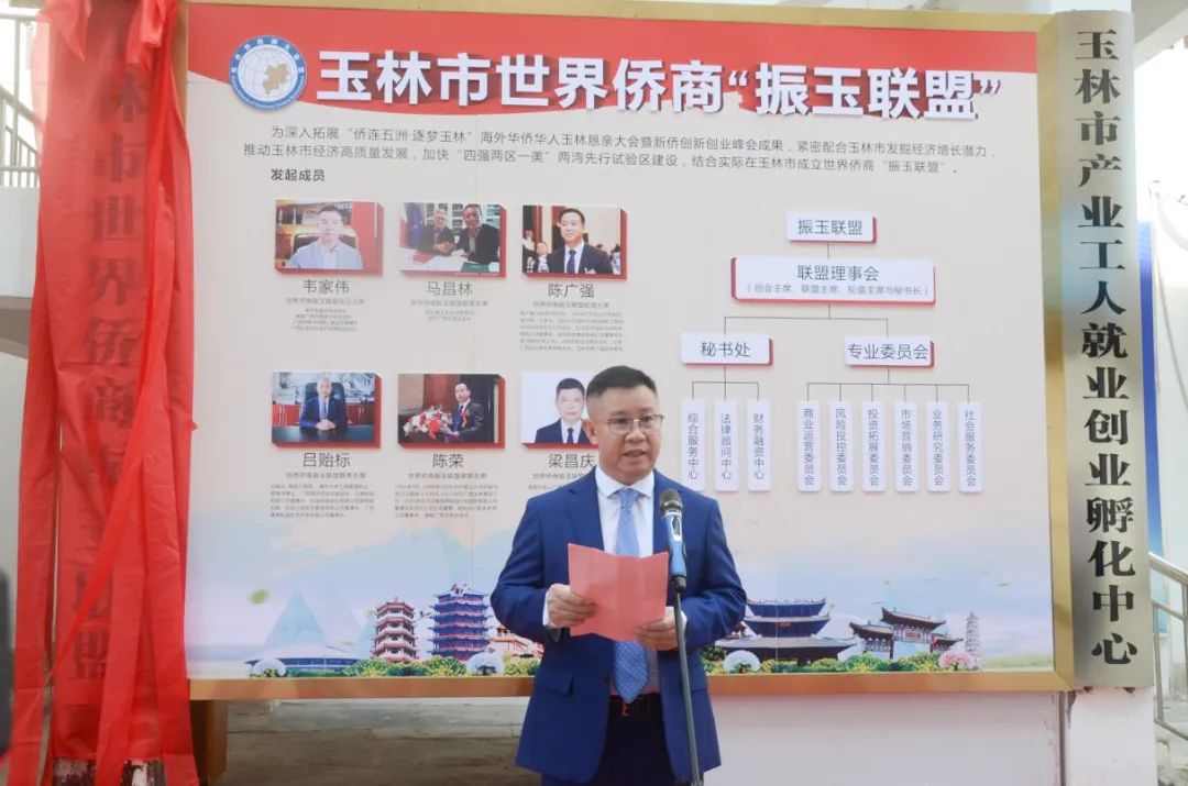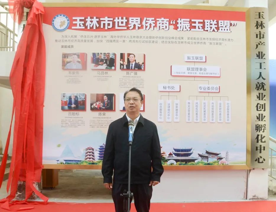 11月1日上午,玉林市世界侨商“振玉联盟”在玉林城区举行揭牌仪式。市委常委、统战部部长邓国忠,世界侨商“振玉联盟”创会主席韦家伟出席仪式并讲话。