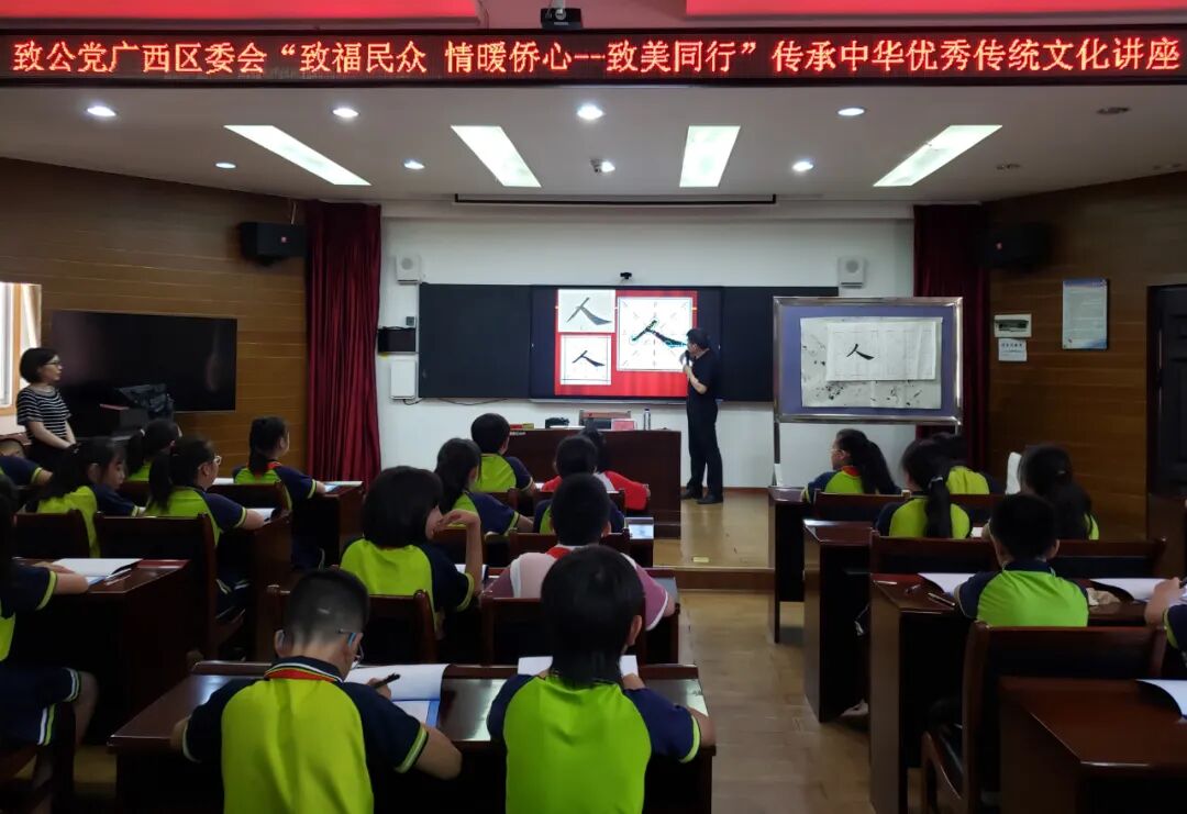 致公党广西区委主委、自治区文化和旅游厅厅长欧余军多次强调,中华优秀传统文化是中华民族的根和魂,对人们工作生活的各方面都有着深刻影响作用,广西致公党员中书画人才多,在弘扬和传承中华优秀传统文化方面要多做点工作。值此民主党派开展“凝心铸魂强根基、团结奋进新征程”主题教育之际,致公党广西区委积极策划主办系列“致福民众·情暖侨心——致美同行”品牌传统文化进校园活动。