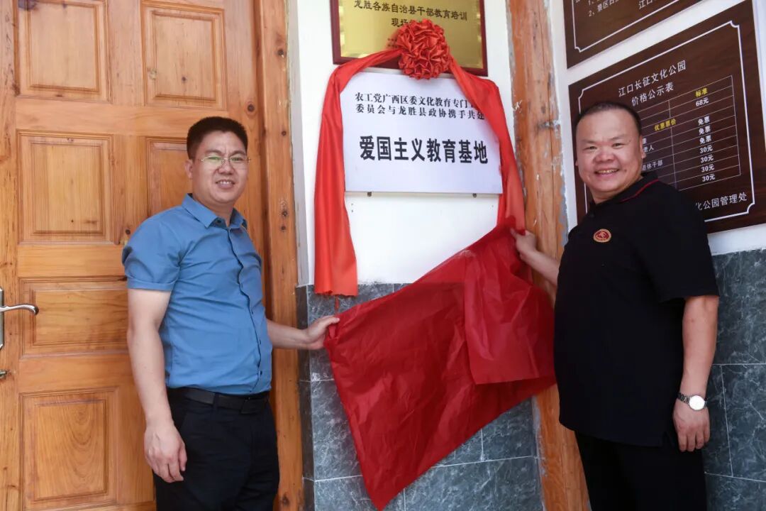 7月10日至11日,农工党广西区文化教育专委会主任周建伟率专委会部分骨干一行赴桂林市龙胜县乐江镇江口村举行农工党广西区文化教育专委会与龙胜县政协携手共建爱国主义教育基地揭牌仪式。龙胜县政协副主席唐忠生出席揭牌仪式并与周建伟共同为基地揭牌。