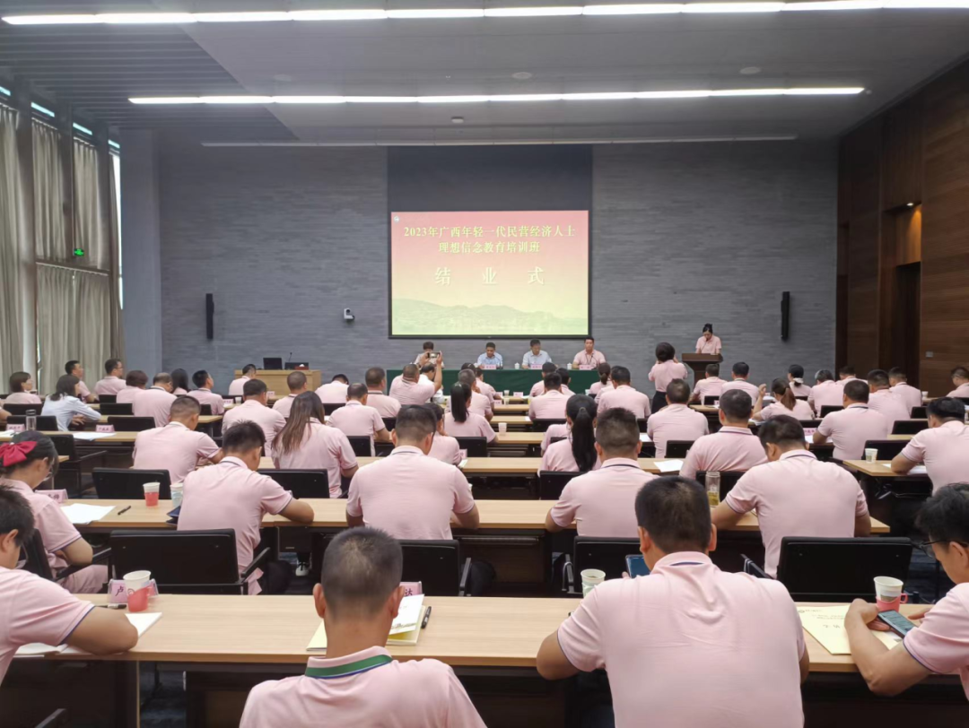 6月25日至7月1日,自治区工商联在百色干部学院举办2023年广西年轻一代民营经济人士理想信念教育培训班。自治区党委统战部副部长、自治区工商联党组书记雷永达出席结业式并讲话,百色干部学院常务副院长刘鹏飞出席结业式。