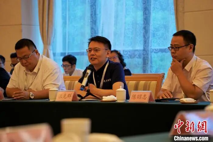 8月21日,大陆任教台湾教师融合发展主题研修活动在烟台举行。台湾教师在座谈会上发言。 中新社记者 张杨彬 摄