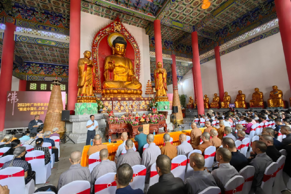 9月2日,以“推进中国化·点亮人间灯”为主题的广西佛教协会2023年讲经交流巡讲活动南宁站在广西南宁市天宁寺举办,广西壮族自治区民族宗教事务委员会党组成员、副主任梁柳宁出席并发表讲话。湖南省长沙市洗心禅寺首座妙华法师主讲,来自广西各地的法师、居士三百多人参加了本次讲经交流巡讲活动。