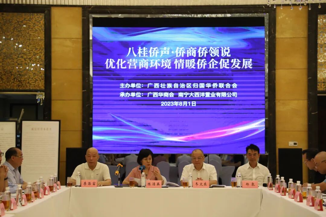 8月1日,广西侨联在南宁举办“八桂侨声·侨商侨领说”主题交流活动,邀请来自美国、法国、希腊、波兰、巴西、泰国、菲律宾、缅甸和柬埔寨等国的侨商侨领及区内侨商代表,围绕“优化营商环境,情暖侨企促发展”的主题,学习习近平总书记今年两会期间在看望参加政协会议的民建工商联界委员时的重要讲话精神,以及《中共中央国务院关于促进民营经济发展壮大的意见》,结合自身侨居创业和留学归国经历,畅谈如何坚持守正创新发展,担好企业社会责任,助推壮美广西建设。