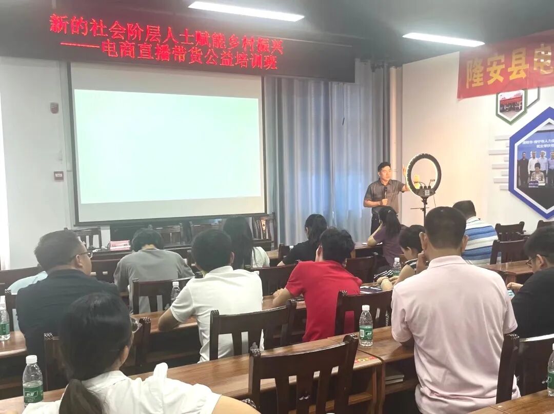7月25日,由自治区党委统战部、隆安县委统战部联合主办,广西新联会网络人士分会承办的新的社会阶层人士赋能乡村振兴——电商直播带货公益培训班在隆安县农民工创业园电子商务服务中心举行,来自隆安县各企业电商人、农村电商人、带货主播等40多人参加培训。