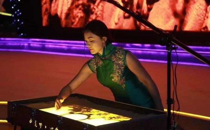 终于,我安全到达了天津,又安全到达了沙画艺术培训中心。一切在路上想象的危险都没有发生。随后,我很快抛开了旅途的烦恼和疲劳,全身心地投入到沙画艺术的学习当中。我如饥似渴地、没日没夜练习,一段时间后,得到老师的认可,我学成而归,家人们终于放下了心中悬着的一块大石,朋友们也为我捏了一把汗。为了展示我的学习成果,我几乎是迫不及待地向他们展示起我的“学有所成”,果然,他们一个个都看得目瞪口呆!这是他们第一次现场看到的沙画表演啊,父亲说、丈夫说、朋友说,比看电视的还感到震撼、神奇!没多久,刚好朋友结婚,我爽快地应邀在婚礼上进行婚礼沙画表演,那也是我人生中第一次现场沙画表演!同时,我的沙画展示就在脸红耳热、心跳加速、激动兴奋当中进行着。现场中我感觉到,当时围观的人很多,而且大家还纷纷拿出手相、相机拍照,人们都被沙画艺术的神奇与魅力吸引住了!一场表演下来,大家竟争相要求我留下联系电话,不知不觉地,“沙画第一人”的称号就在一场接一场的沙画表演、一次又一次的才艺大赛中传播开来。我,踏上了沙画表演艺术的创业之路!