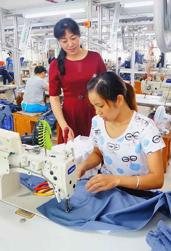 龙新村是柳江区的一个偏远贫困村,“百企扶百村”活动开展后,她主动与龙新村结对子,牵手贫困户开展精准扶贫工作。针对贫困村(户)和企业实际,坚持走“输血”与“造血”相结合扶贫路子,对该村54户贫困户中32户有劳动能力的贫困户免费开展了缝纫技术培训,免费提供缝纫机和加工原材料,让贫困群众在家就可以利用农闲时加工手套产品,并以高出同行的收购价统一进村回收,使贫困户每月增加2000元左右的经济收入,为贫困群众开启一条“农忙时下田地干活、农闲时在家打工,顾家赚钱两不误”的脱贫致富之路。2019年初,她投资85万元购置56套缝纫设备,在贫困户集中安置点柳江区老乡家园建立起扶贫“微车间”,为易地搬迁贫困户提供50多个劳动就业岗位,并与其他30多位村民签订劳动协议,起到了吸收“一人务工帮扶一家人”的效果。据统计,多年来她累计为贫困村、贫困户、山区学校和困难学生、留守儿童等捐款捐物200多万元。