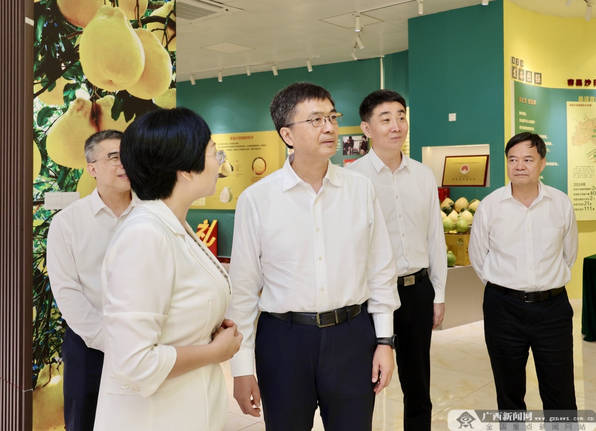 容县松山镇沙田村木兰塘屯是沙田柚的“发源地”。陈刚在木兰塘屯详细了解基层党建、乡村治理及乡村特色产业发展情况,要求继续加强党建引领,推动党建工作与产业发展同频共振、深度融合,发展壮大富民产业,推动一二三产业融合发展,不断提升乡村产业发展、乡村建设、乡村治理水平,扎实推进乡村全面振兴。陈刚还走进兴业县茗韵茶业有限公司生产车间和展销厅,详细了解智慧茶园建设、生产加工、市场营销等情况。当得知该企业是玉商回归企业,实行“公司+合作社+农户”发展模式,带动200多名当地群众就业时,陈刚给予肯定,勉励企业做优茶叶品质,进一步加大宣传和营销力度,提升产品附加值,带动更多群众就业增收。