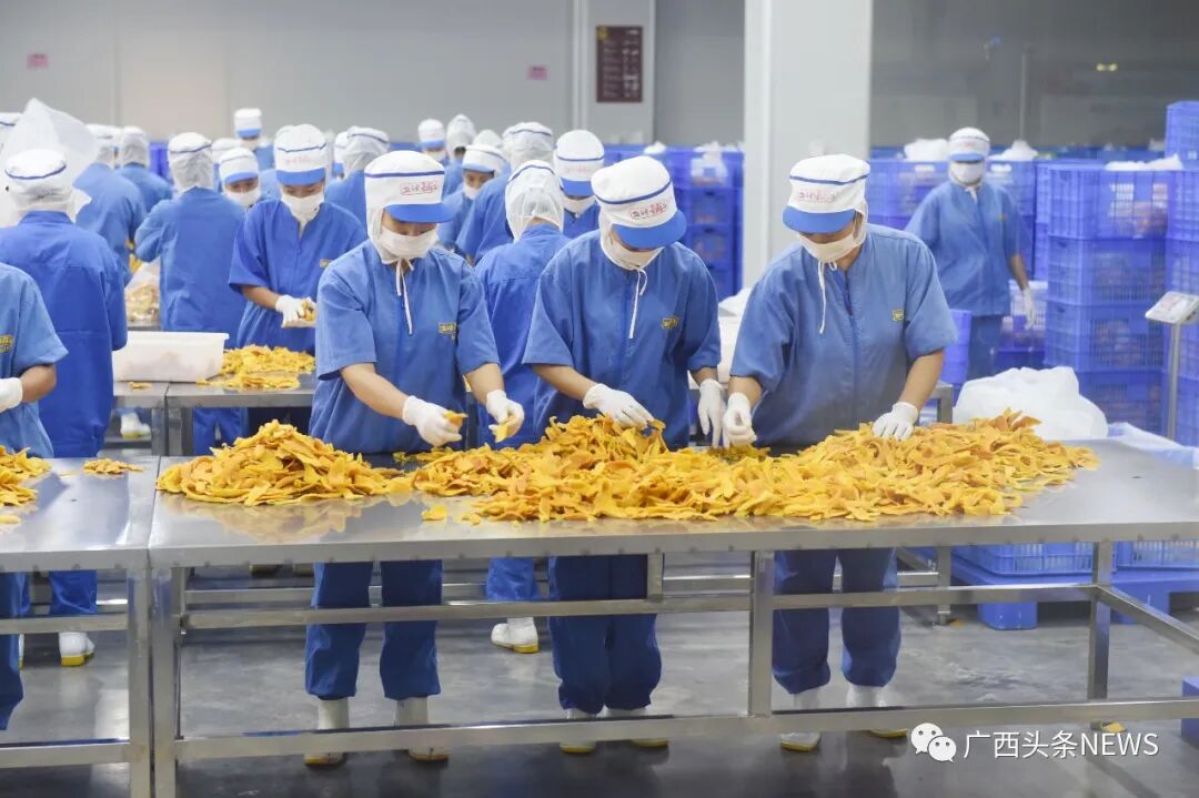 友谊关工业园(园区加工车间流水作业),芒果干加工生产车间。 庞立坚 摄