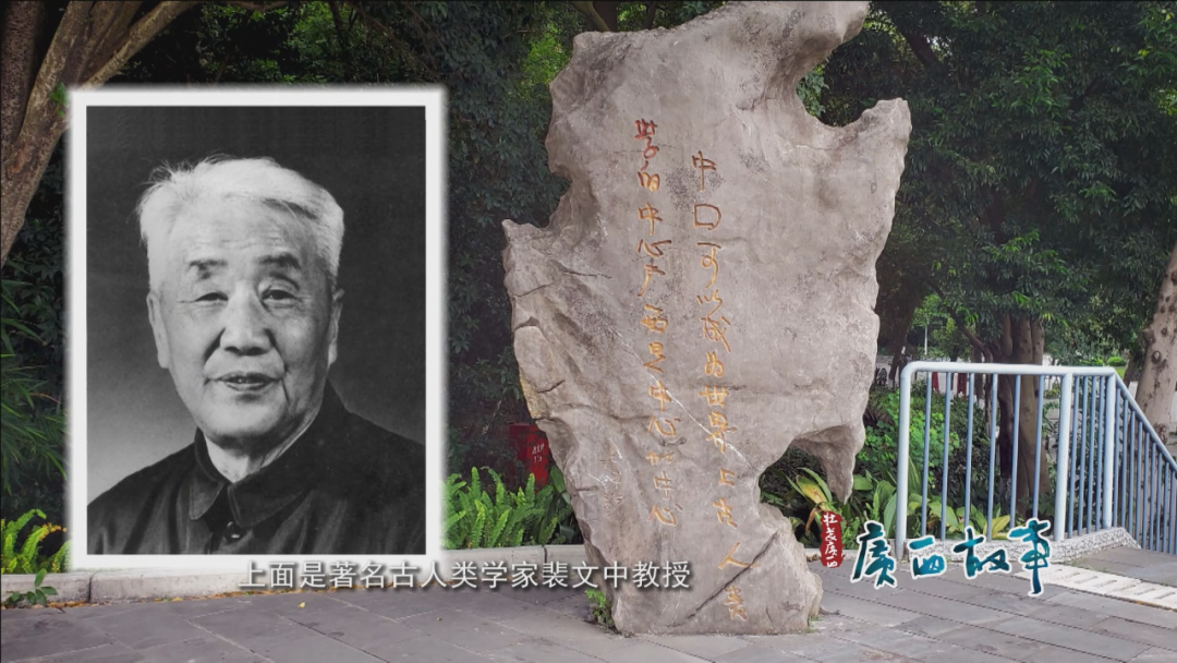中国第一座洞穴科学博物馆——柳州白莲洞洞穴科学博物馆,竖立着这样一块石碑,上面是著名古人类学家裴文中教授亲笔书写的题词——“中国可以成为世界上古人类学的中心,广西是中心的中心”。