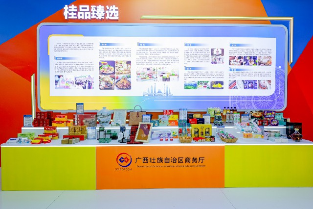 在桂品臻选和消费焕新展区内,双钱、田七、金嗓子、中茶、杨晋记等老字号企业带来了特色新品,东盟特色商品、国潮文创、非遗手工艺品等“广西好物”则引得众多观众纷纷打卡拍照。此外,在“优品荟”和“美食荟”两大互动体验区里,客商可以了解到独具广西特色的南宁老友粉、柳州螺蛳粉、桂林米粉、梧州六堡茶、北海南珠等产品。
