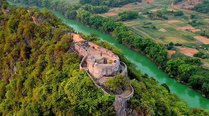 小连城位于崇左市龙州县。龙州和越南水路相通,是边防三关(镇南、平而、水口)的锁匙,有“一镇(龙州镇)锁三关”的说法。依托龙州的自然风貌,旧时许多防御性城墙依山而建,承担起护卫边关的重责,小连城就是这样的存在。