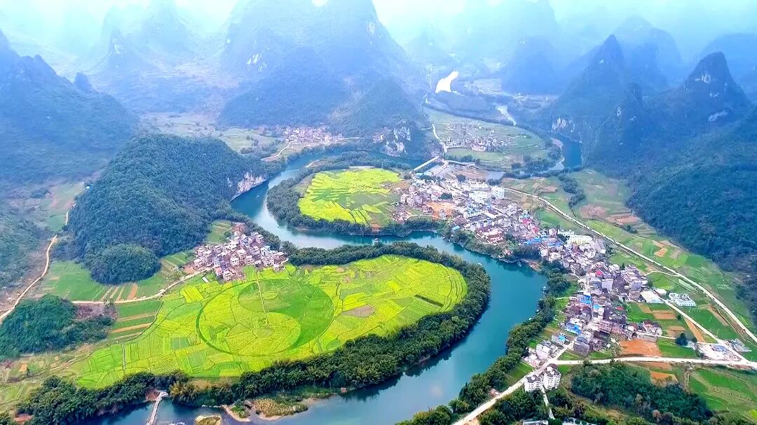 明仕田园位于广西崇左市大新县堪圩乡明仕村。以石灰岩为主体的山脉常年受到雨水侵蚀,形成独特的喀斯特地貌风光。位于其中的明仕河发源于越南,从念斗屯流入我国,乘坐竹排顺流而下,你可以领略到别样的青山绿水。