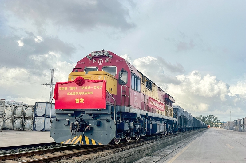 10月15日下午,满载3000吨越南氧化铝的铁海联运专列从广西防城港站开出,沿着西部陆海新通道北上驶向新疆石河子。这是广西开出的首趟自越南同奈港至新疆的氧化铝铁海联运专列,开辟了东南亚经北部湾港至新疆能源产业基地间的物流快车道,为推动国内国际双循环、降低企业物流成本提供有力的运输保障。