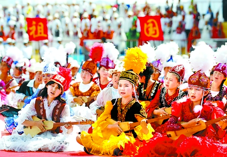 ▲在新疆乌恰县举办的玛纳斯国际文化旅游节上,小演员们在表演。 来源:新华社