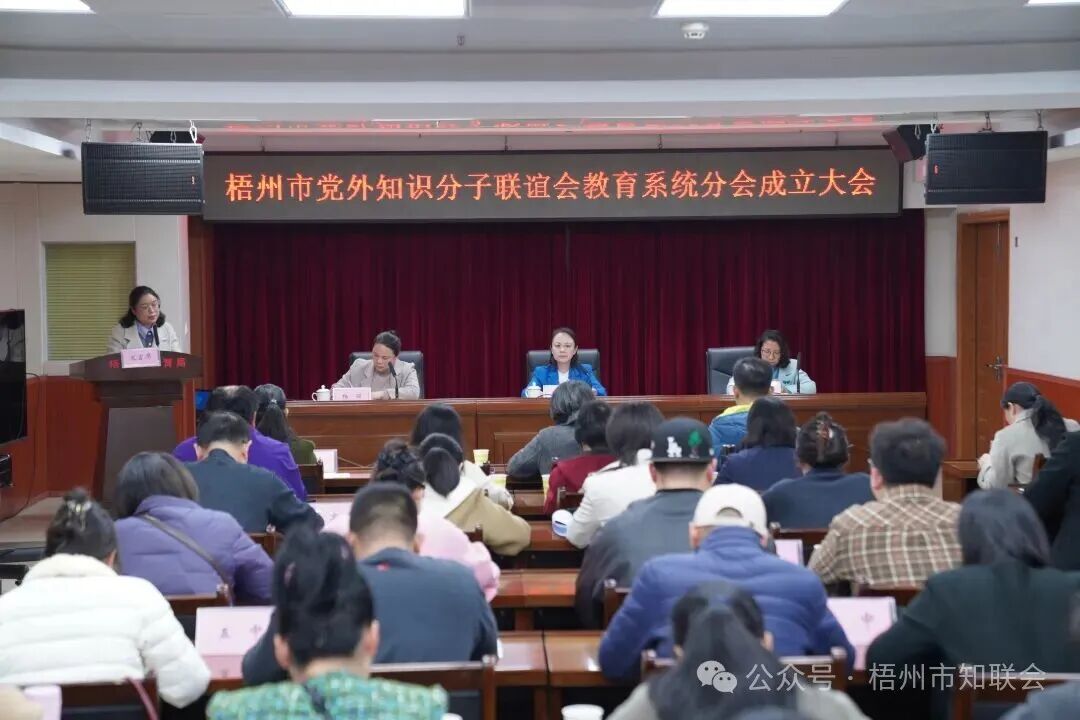 1月29日,梧州市党外知识分子联谊会教育系统分会成立大会在梧州市教育局13楼会议室召开,市委统战部副部长、市侨办主任(兼)黎燕华,市党外知识分子联谊会副会长、市总工会经审委主任冯嘉瑶,市委教育工委副书记、市教育局党组成员杨丽出席会议。