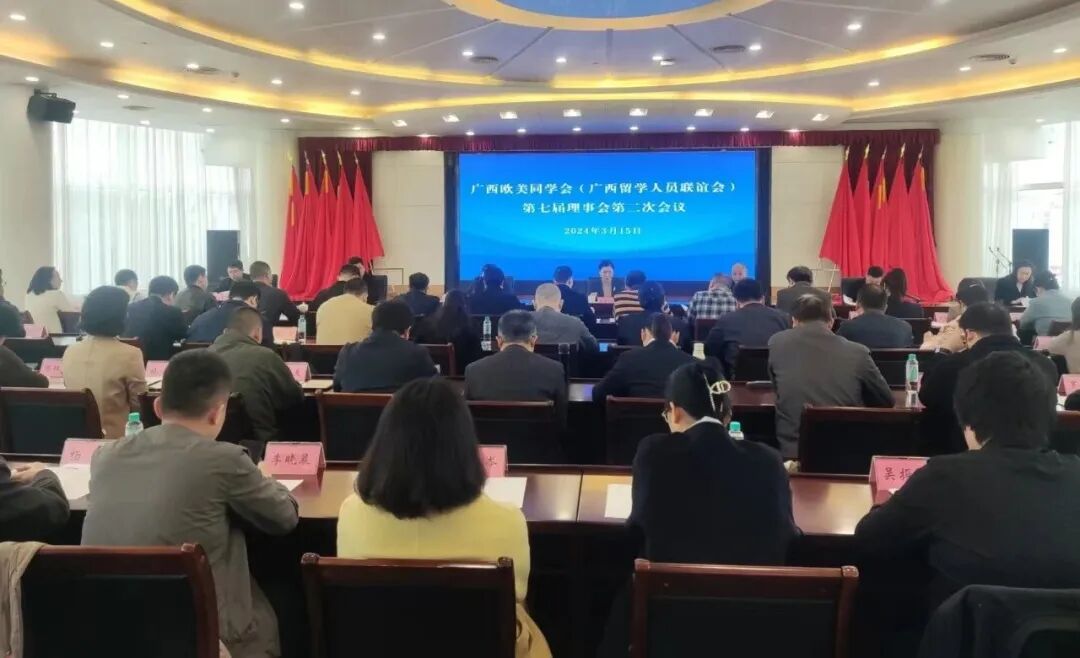 会议传达学习全国“两会”精神,全面总结广西欧美同学会(广西留学人员联谊会)2023年度工作,研究部署2024年度工作。会议强调,2024年是我区留学人员工作守正创新、开拓进取、大有可为的一年。希望各级各类留学人员组织和广大归国留学人员坚持以习近平新时代中国特色社会主义思想为引领,深入学习贯彻习近平总书记对广西重大方略要求和致欧美同学会成立110周年重要贺信精神,持续弘扬“爱国为民、自信自强、开拓奋进、开放包容”新时代留学报国精神,为建设铸牢中华民族共同体意识示范区和我区经济社会高质量发展献计出力。进一步强化组织建设,增强组织效能,团结联系广大留学人员,建好留学人员之家。