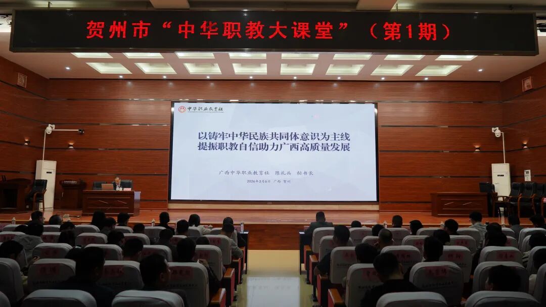 市政协副主席、民建贺州市委主委、市中华职业教育社主任罗扬生出席活动并讲话。他指出,举办“中华职教大课堂”,是贺州市中华职教社深入贯彻落实党的二十届四中全会精神,强化思想政治引领,服务全市职业教育高质量发展的一项重要举措。他强调,要通过学习进一步坚定自信,充分认识到职业教育前途广阔、大有可为,以更加奋发有为的精神状态迎接“十五五”的新挑战、新使命。要联系实际,结合各自专业特点和教学实际,积极探索职业教育与中心工作融合的有效路径,特别是要将铸牢中华民族共同体意识有机融入教育教学全过程,培养更多具有家国情怀和民族团结基因的高素质技术技能人才。