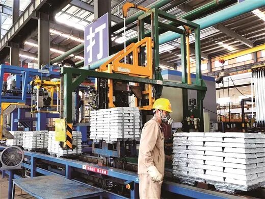 广西持续优化营商环境助力企业发展壮大,其中南方有色集团连续3年荣获中国铅锌行业“绿色发展杰出贡献奖”。图为南方有色集团锌熔铸工段智能设备正进行锌锭自动打包和称重。