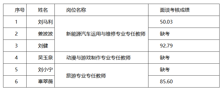 根据《广西华侨学校2025年公开招聘高层次人才的公告》等有关规定,现将面谈考核成绩及考核名单公告如下: