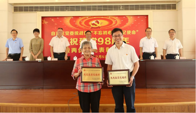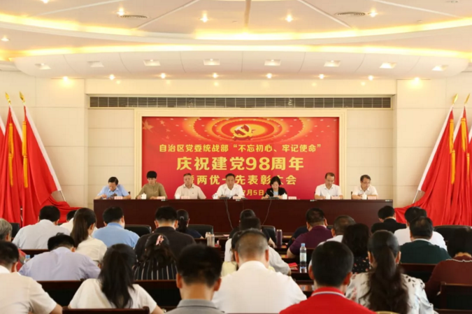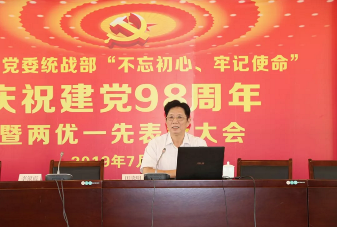 为深入推进“不忘初心、牢记使命”主题教育工作,7月5日,自治区党委统战部举办庆祝中国共产党成立98周年暨“两优一先”表彰大会活动。大会邀请了中国统一战线理论研究会原常务理事、自治区党委统战部原巡视员田晓明作主题报告。自治区党委统战部常务副部长、自治区侨办主任林怀勇出席并讲话,自治区党委统战部巡视员、部务会成员、机关党委书记李银霞主持会议。
