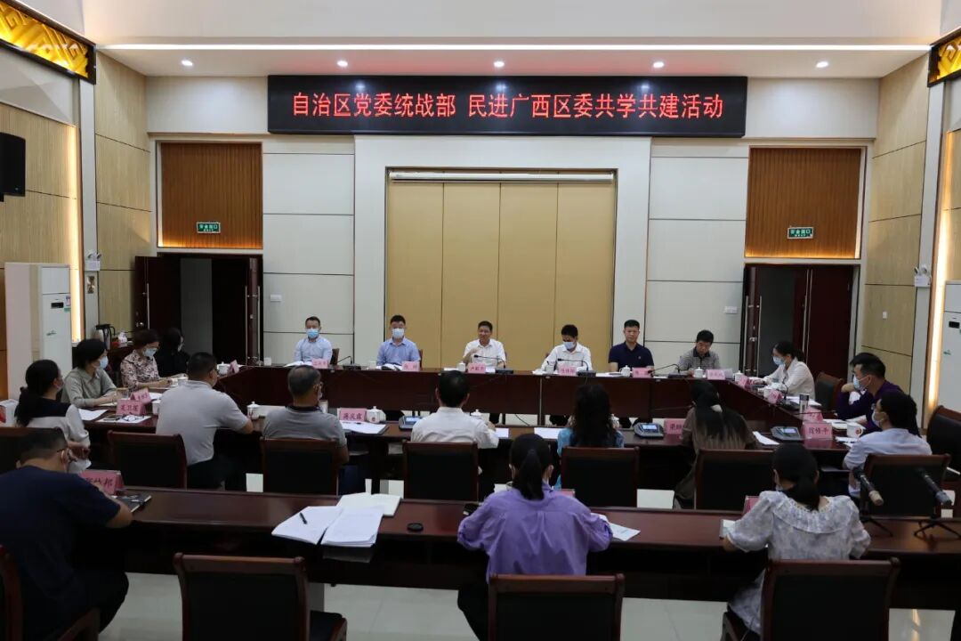 11月10日,自治区党委统战部第五党支部与民进广西区委机关开展“共学共建”活动,共同学习中共二十大精神。自治区党委统战部副部长、自治区工商联党组书记卢能干,民进广西区委副主委兼秘书长丘映含参加活动并讲话,民进广西区委一级巡视员蒋庆霖参加活动。