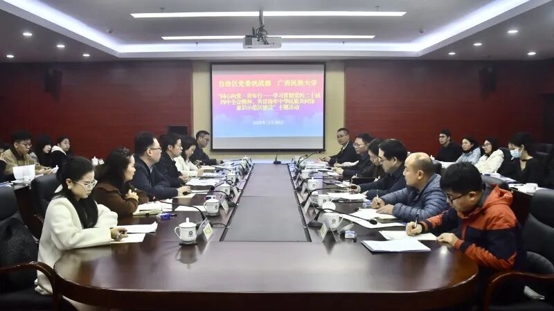 为深入贯彻党的二十届四中全会及自治区党委十二届十一次全会精神,推动自治区党委统战部机关青年党员干部和高校师生紧扣铸牢中华民族共同体意识这条主线,助力建设铸牢中华民族共同体意识示范区,自治区党委统战部副部长、机关党委书记姜芳芳带领部青年理论学习小组成员赴广西民族大学开展“同心向党·青年行——学习贯彻党的二十届四中全会精神,共话铸牢中华民族共同体意识示范区建设”主题活动。广西民族大学党委书记唐平秋、党委副书记邓国彬参加活动。